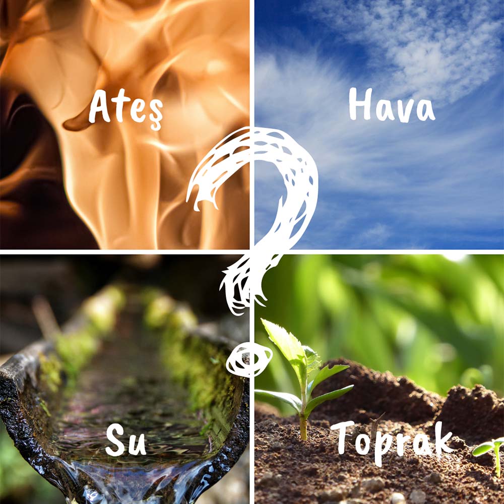 - Her şeyin merkezindeki 4 element (ateş, hava, su toprak)