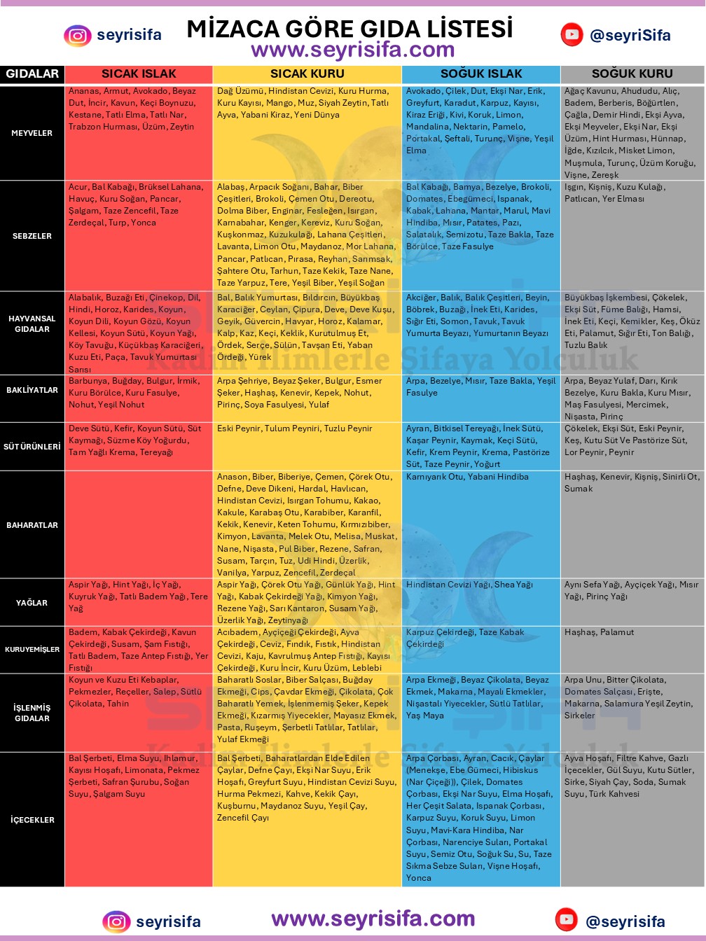 - Hastalıkların Mizacı ve hastalıklara göre şifa yolları
